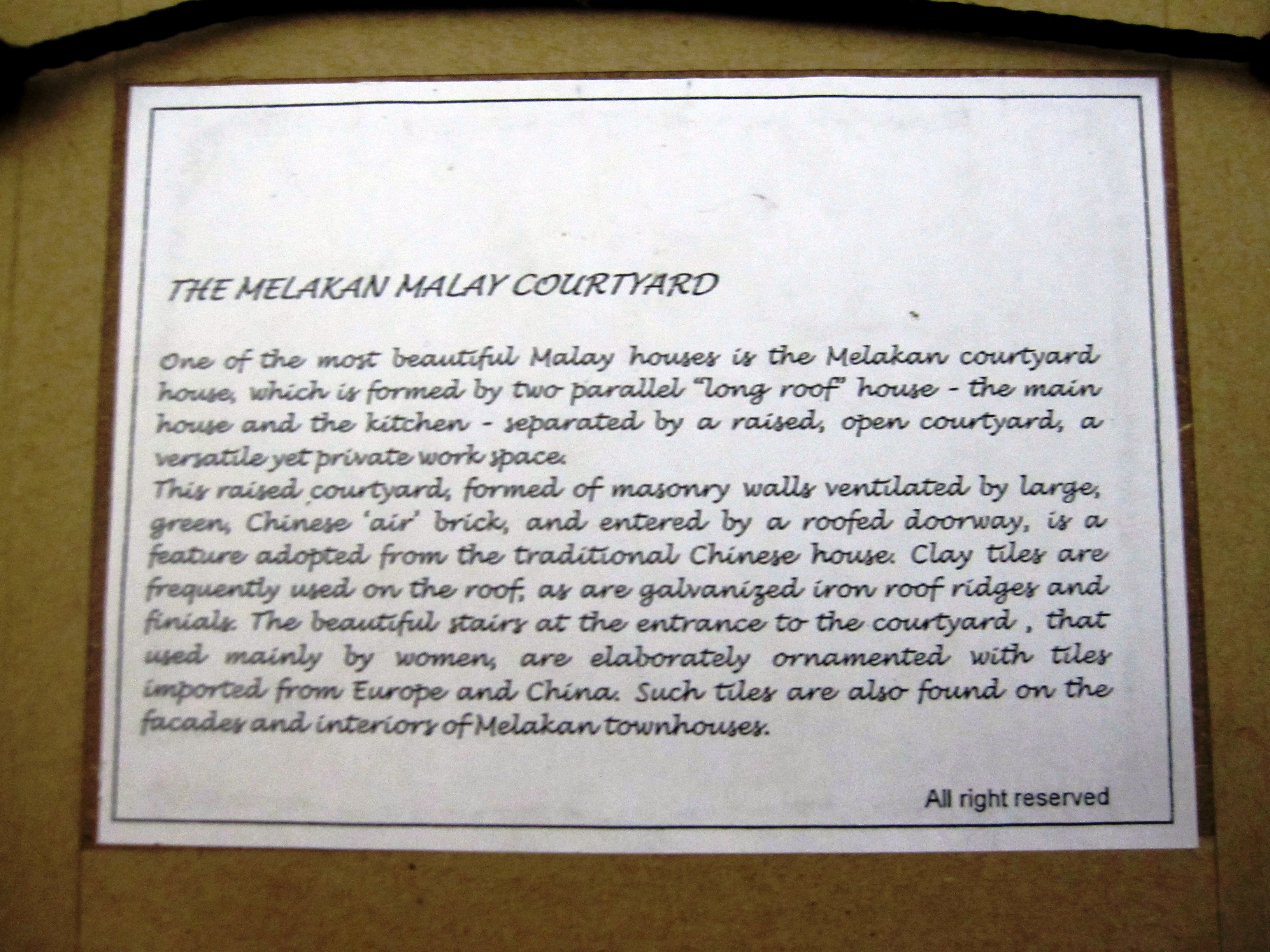 my purchase, entitled: “melakan malay courtyard”