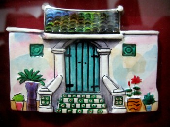 Along Temple Street in Melaka, Malaysia there sits a long-haired Chinese-Malay looking man who introduced himself as Mr. Ho.  He seems to enjoy smoking cigar from a classic looking wooden pipe during what seem to be a lazy afternoon in Melaka.  While smoking from his pipe, he paints on ceramic tiles that depict colorful mini-replicas of antique European china as well as artistic facades of mansions and colonial buildings found in Melaka.